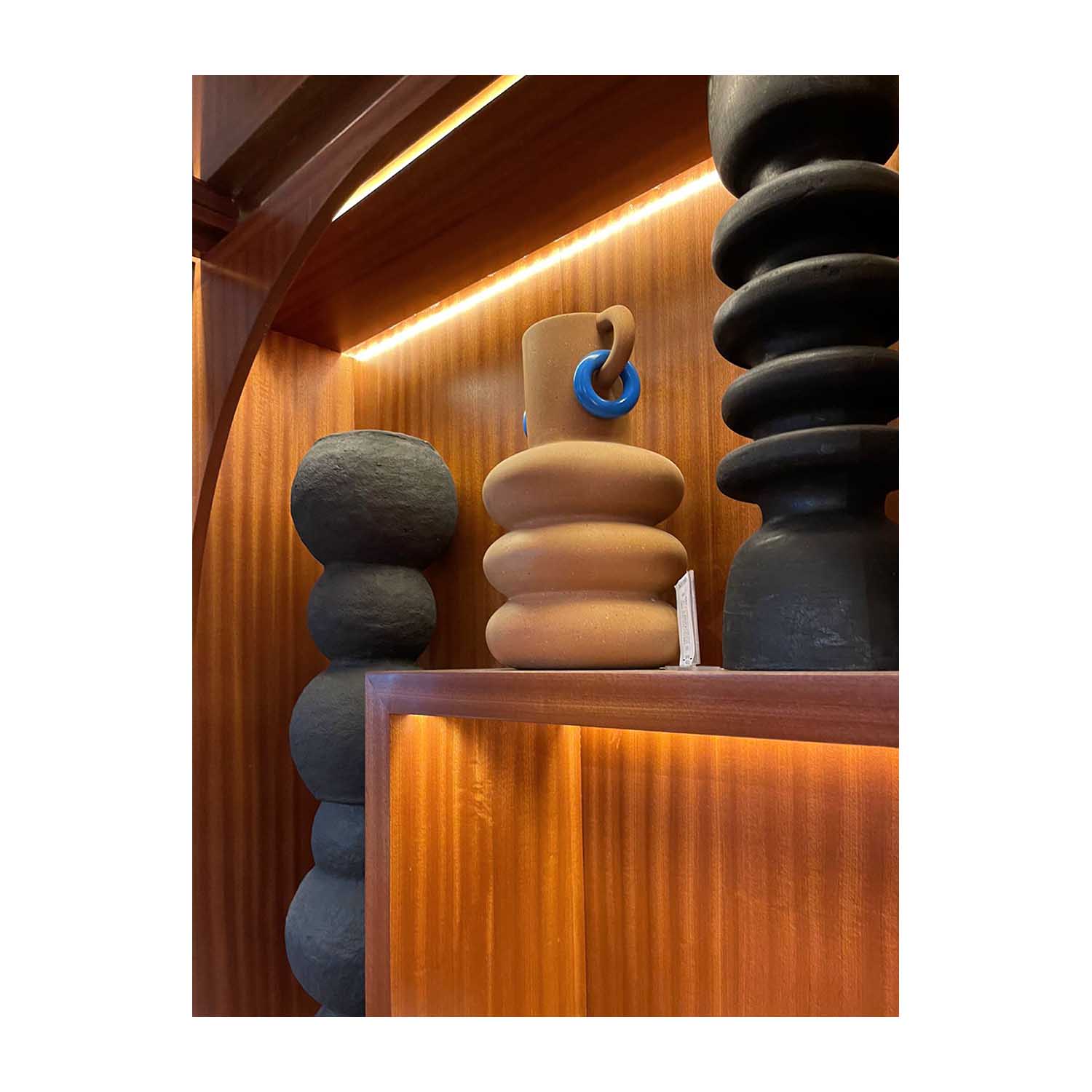 Cada pieza es una obra de elaboración minuciosa de trabajo artesanal en el que intervienen en su elaboración más de 6 artesanos mexicanos. Cualquiera de las Leles puede habitar y resaltar en cualquier espacio gracias al color brillante de su argolla, detalle que contrasta con el acabado suave y natural del resto de la pieza.