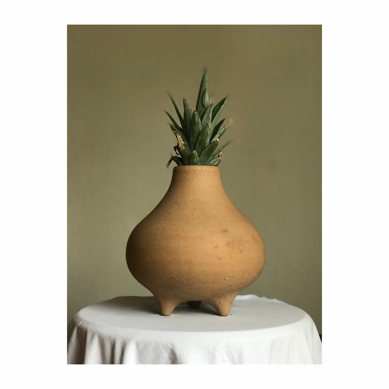 Tepache es una pieza de decoración hecha completamente a mano. Sirve para reutilizar y cultivar en casa restos orgánicos, en este caso particular las coronas de las piñas. Así la planta que nace en el interior de la maceta y la aparición del follaje que sobresale convierten al vegetal en parte del diseño completo de la pieza. Disponible en acabado barro suavizado natural.